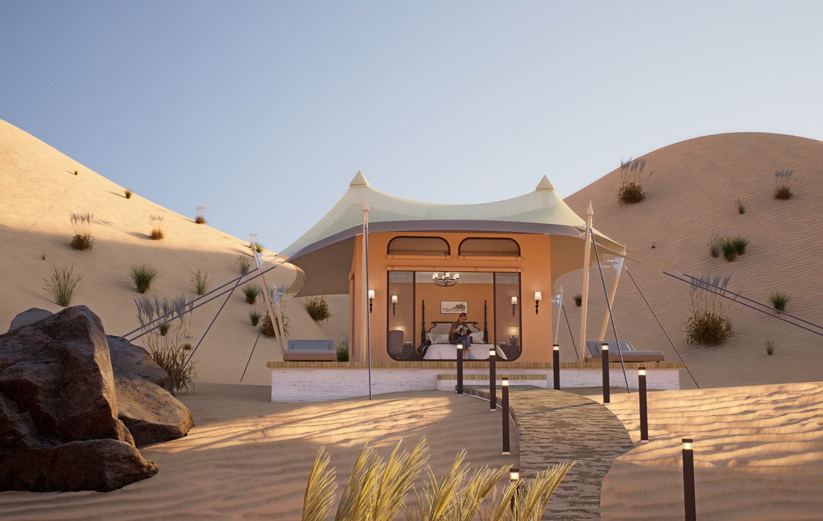 Luxury tent crafted for seaside and beachfront resorts with UV-stable canopy and corrosion-resistant components.